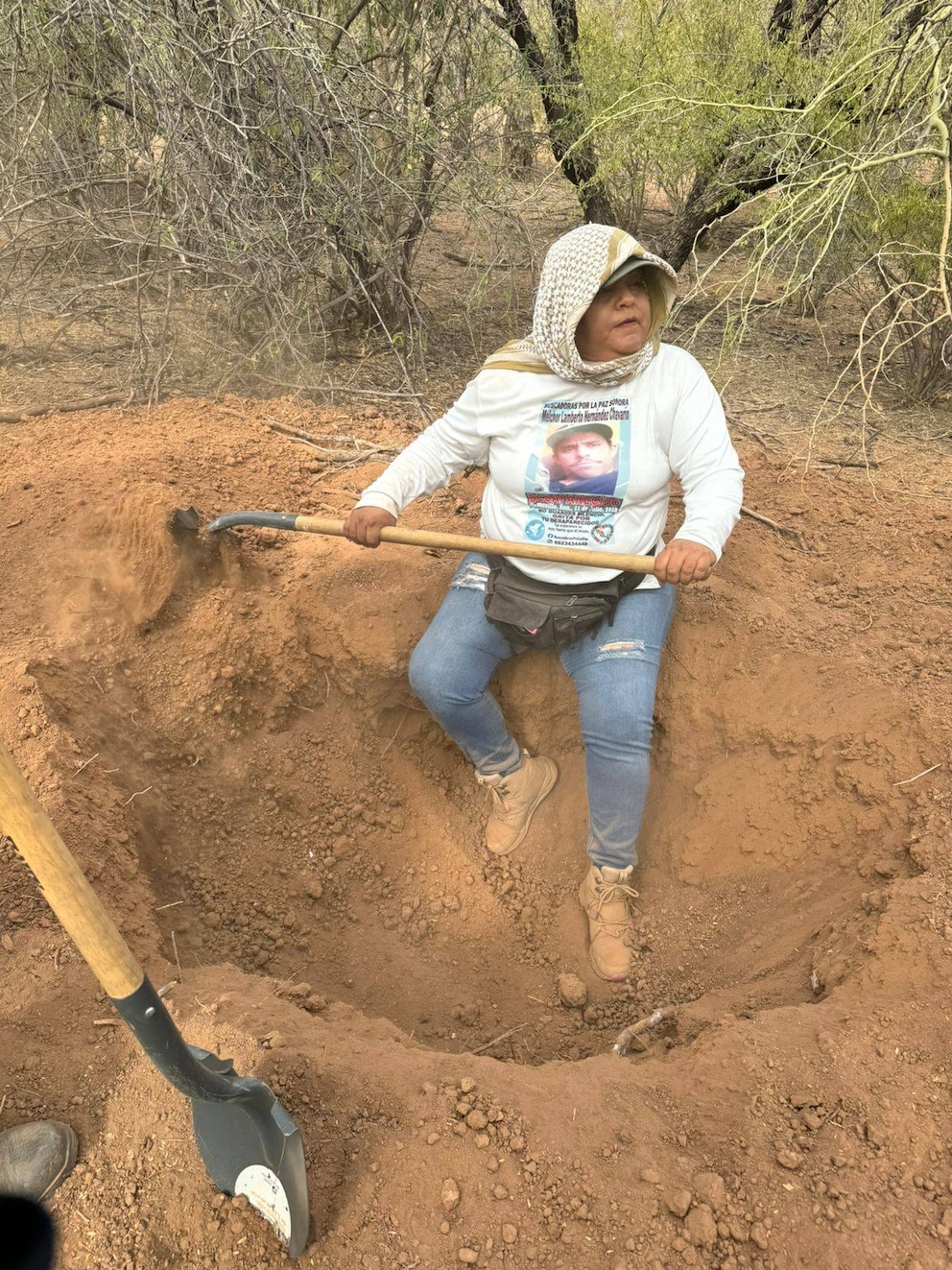A message alerted Cecilia Delgado Grijalva, leader of the collective Buscadoras por la Paz Sonora, about the site where they had to dig; it was a region they already knew, the same one that another anonymous message had pointed out to them a year ago and that led them to rescue human remains from eight clandestine graves. On this occasion – one kilometer away – the search yielded 39 graves and counting.